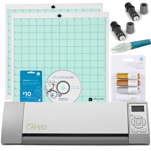 - The silhouette cameo starter bundle includes an extra mat (2 total), cutting blade (2 total), metallic pen set and pick-me-up-tool