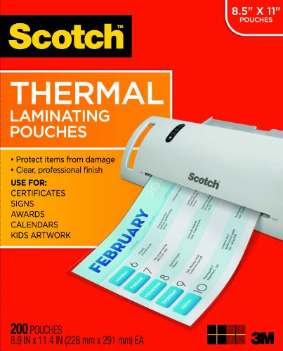 Scotch Thermal Laminator Pouches protect documents you handle frequently.These 5 mil thick thermal laminating pouches are for use with thermal laminators to. Pouches are clear to let important information show through. Letter size.